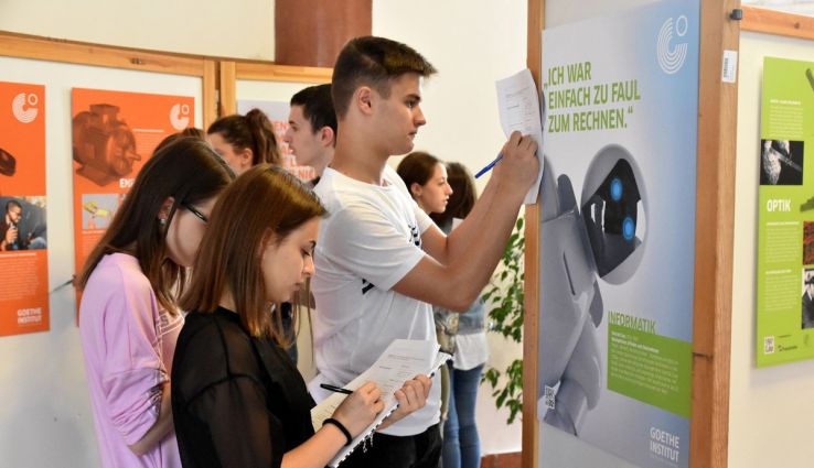 Egy izgalmas, plakátokból kialakított német nyelvű kiállítás várja az érdeklődő, németül tanuló diákokat a Kecskeméti Református Gimnázium 2. emeletén, a kémia labor mellett.